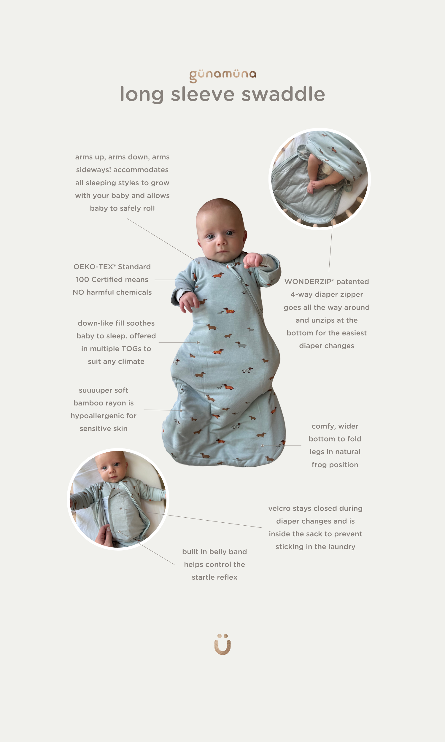 Use the TOG guide below to figure out which weight is right for your baby’s sleeping conditions. Remember, these temperatures are for the nursery temperature your baby is sleeping in. Here at günamüna, we typically stock 0.5 TOG for summertime, 2.5 TOG for wintertime, and 1.0 TOG all year round.