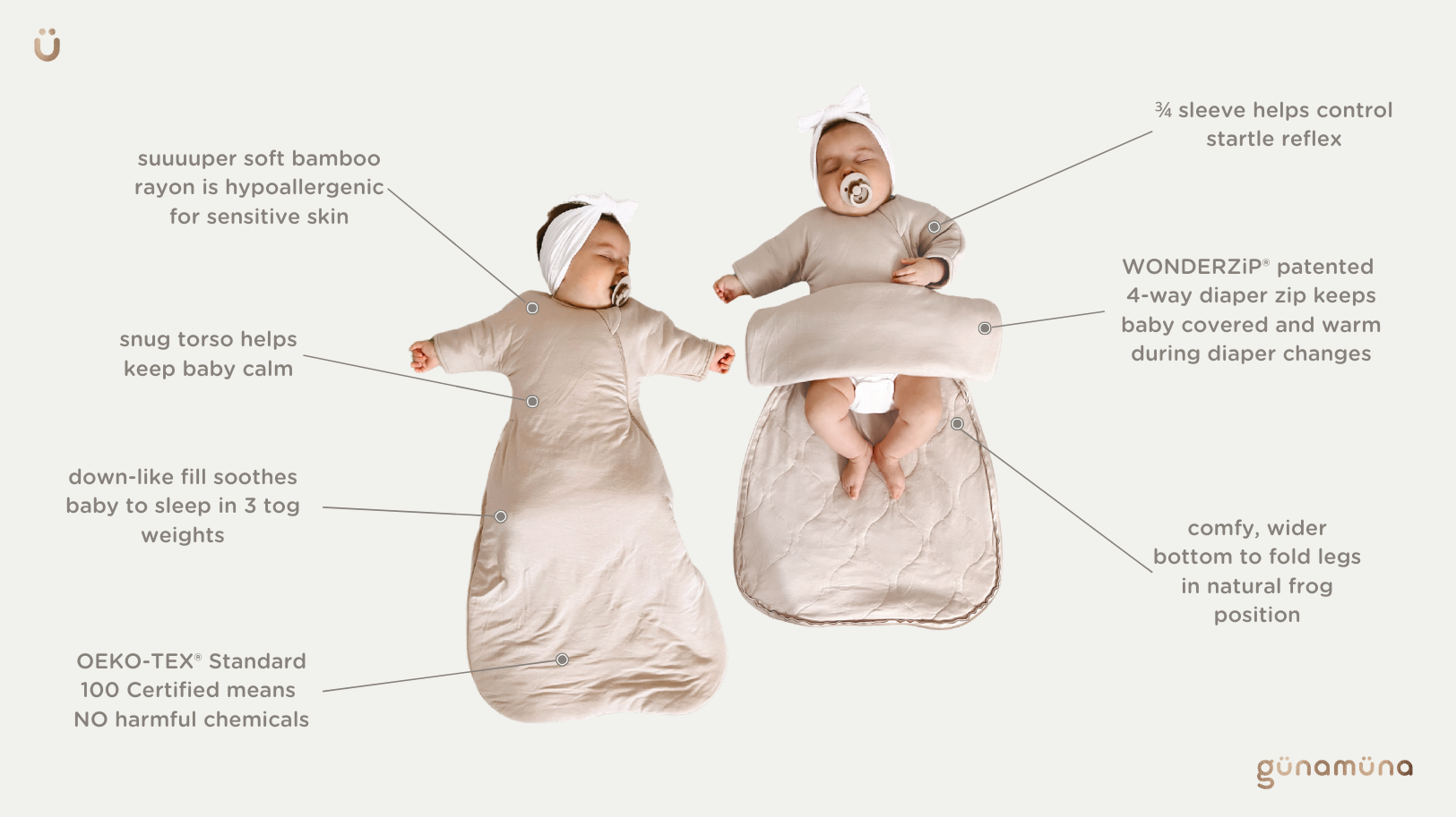 With a genius diaper-zip and extra wide bottom, it allows baby to sleep in natural frog position.