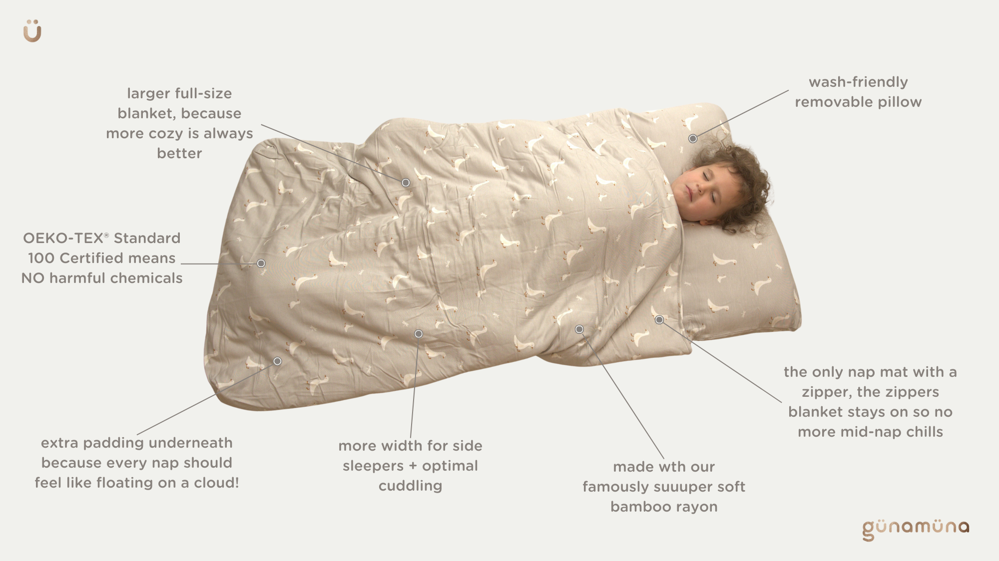 We're the only nap mat with a zipper to keep your LO covered during nap time.
